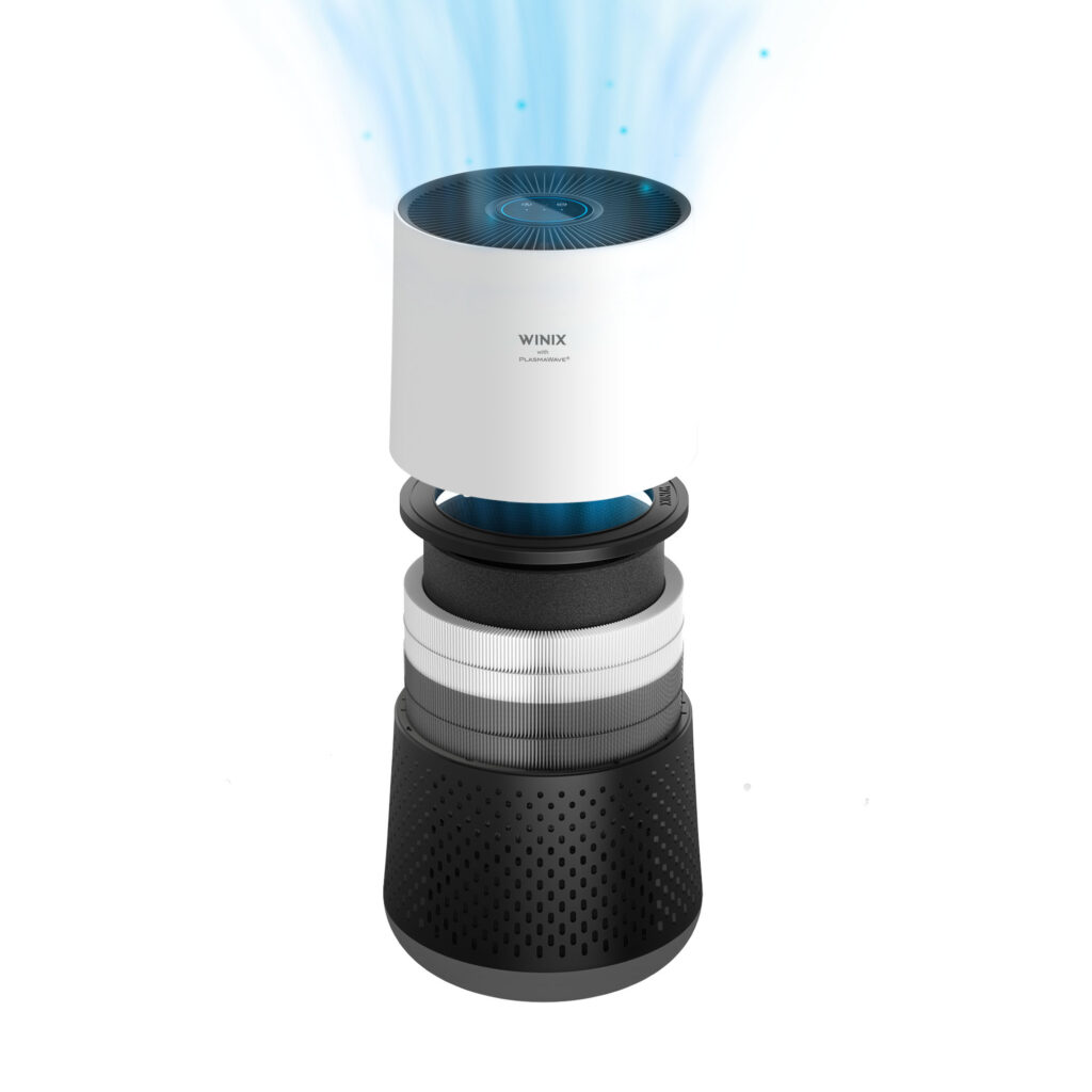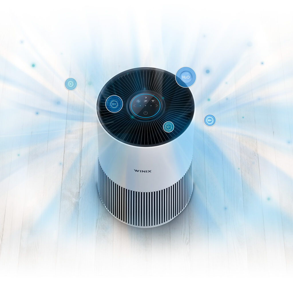 PlasmaWave®はWINIX独自のイオン分解技術で、空気中のウイルス、細菌、におい成分などを分子レベルで分解します。一般的なイオン式と異なり、オゾンを基準値以下に抑えた安全設計です。フィルターで捕集しきれない微細な汚染物質にも作用し、クリーンな空気をサポートします。必要に応じてボタンでオン/オフの切り替えも可能です。